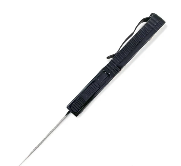 5″ Slim Confederate Flag D/A OTF Automatic Knife Black Dagger Serrated. Keychain/lanyard attachment loop Lifted traction ridges 5.125 inch overall length 440 stainless steel Amazing value Belt clip