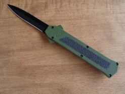 AKC ACE X-treme Silver Italian Automatic Knife Black Dagger. The AKC X-TREME made with modern materials and an aggressive italian design. This new automatic model “ACE” features a CNC worked 6061-T6 silver anodized aluminium handle. The blade on this switchblade is made of AUS-8 japanese steel with a HRC of 58-59 and has a PVD coated finish. It includes a tip up clip for the belt. The “ACE” from AKC X-TREME is very nice and light EDC. Overall Length: 21.5cm – 8.5″ Blade Length: 9.5cm – 3.7″ Weight: 105gr – 3.7ozBlade Material: AUS-8 Japanese Steel Handle Material: Aluminium Made in: Taiwan