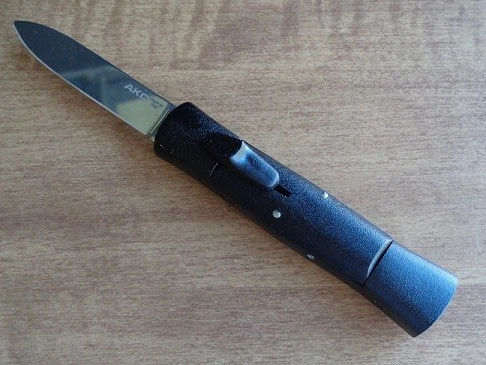 AKC Mini Concord Black D/A OTF Automatic Knife Satin Flat Grind. Overall Length: 15cm – 5,75″ Blade Length: 6cm – 2,75″ Blade thickness: 1,9mm – 0.07″ Weight: 48 gr Blade Material: Stainless steel Handle Material: Alluminium Inlay Material: Aluminium Made in: Italy
