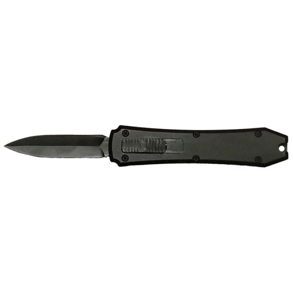 Mini Finger Nail Picker OTF D/A Black Dagger Automatic Knife. Double action in and out with a push of the button. Blade Material: 440 Stainless Handle Material: Aluminum Coloring Method: Anodizing Overall: 5.25″ Blade: 1.875″