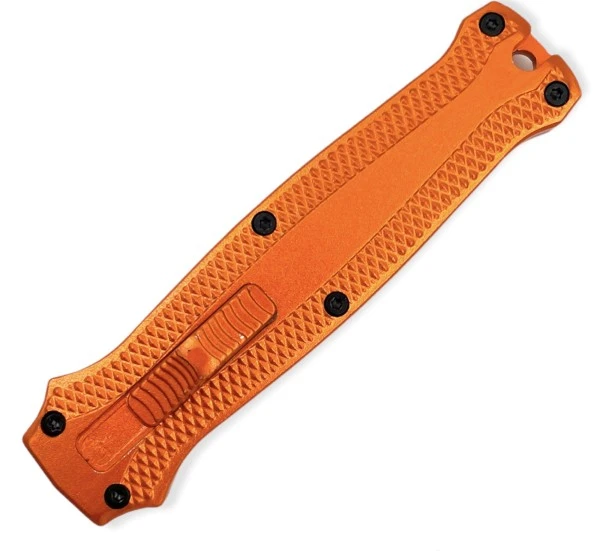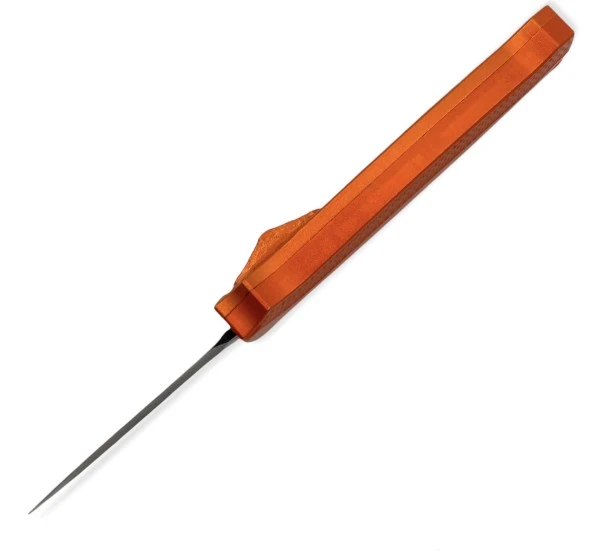 Mini Vampire Orange D/A OTF Automatic Knife Black Dagger. 1.5 oz. heavy duty lightweight frame 4.85″ Overall Length 1.85″ Blade Length 3″ Handle Length Silver Anodized Aluminum Handle Lightweight, quick and reliable OTF action
